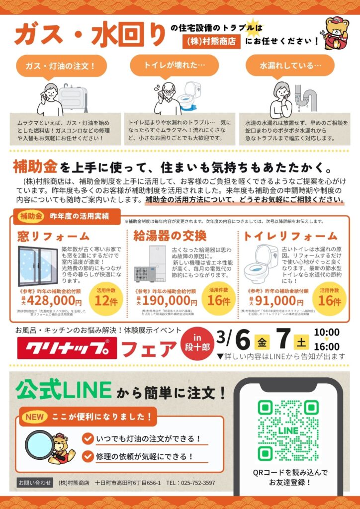 3月には段十郎でクリナップフェアを開催予定します。